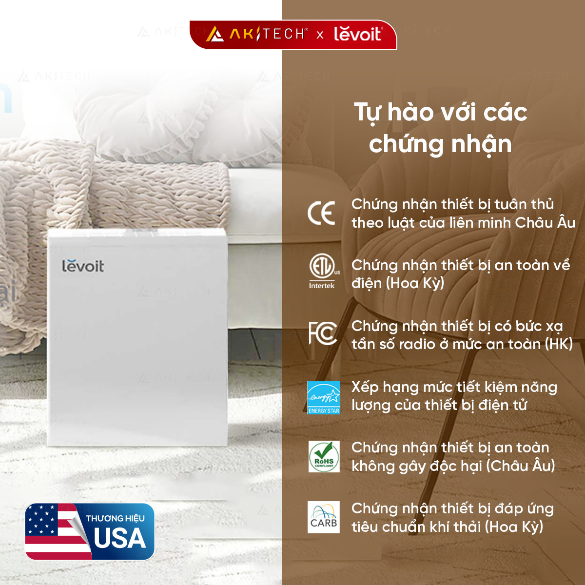 8️⃣Tự hào với 7 chứng nhận tiêu chuẩn: – Chứng nhận thiết bị tuân thủ theo luật của liên minh Châu Âu – Chứng nhận thiết bị an toàn về điện (Hoa Kỳ) – Chứng nhận thiết bị có bức xạ tần số radio ở mức an toàn (Hoa Kỳ) – Xếp hạng mức tiết kiệm năng lượng của thiết bị điện tử – Chứng nhận thiết bị an toàn không gây độc hại (Châu Âu) – Chứng nhận thiết bị đáp ứng các tiêu chuẩn khí thải (Hoa Kỳ)
