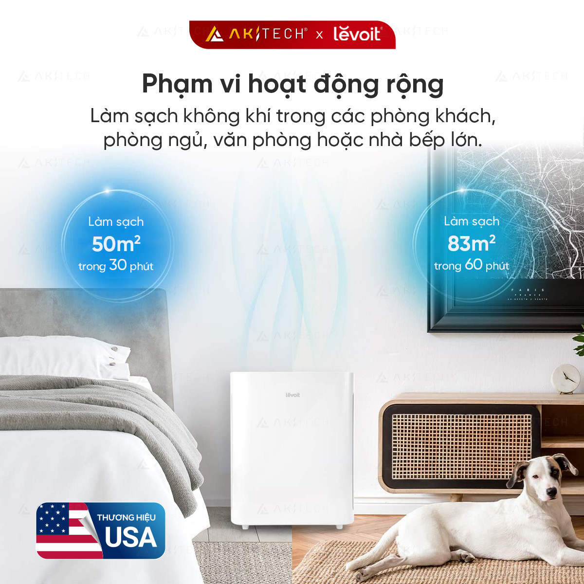 4️⃣Phạm vi hoạt động: Lọc sạch không khí trong vòng 15 phút với diện tích 48 m2