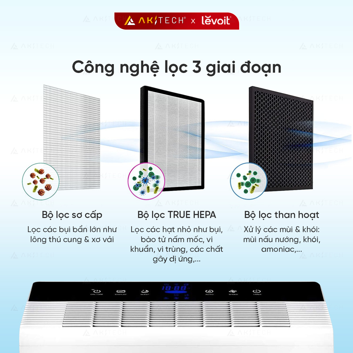 1️⃣Công nghệ ưu việt, máy lọc không khí Levoit 100% không chứa Ozone, không sử dụng phương pháp thanh lọc ánh sáng & anion UV-C gây hại cho trẻ em & người mắc bệnh hen suyễn. Mang lại luồng không khí trong lành tự nhiên.