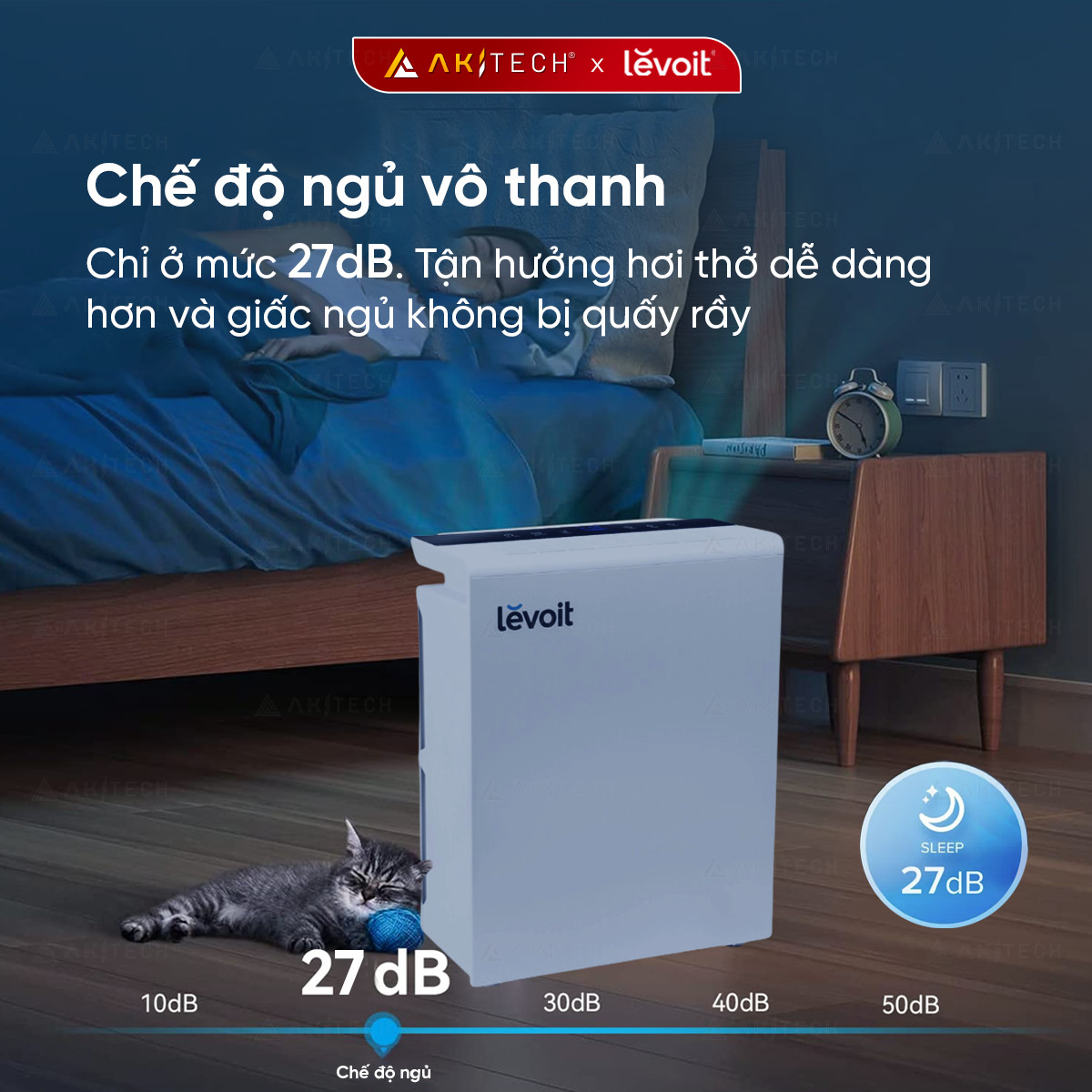 7️⃣Yên tĩnh như một lời thì thầm: tận hưởng hoạt động yên tĩnh, mức độ tiếng ồn ở mức 27 – 52db. Hoàn hảo dù bạn ngủ, thư giãn, làm việc hay tập trung vào các công việc khác.